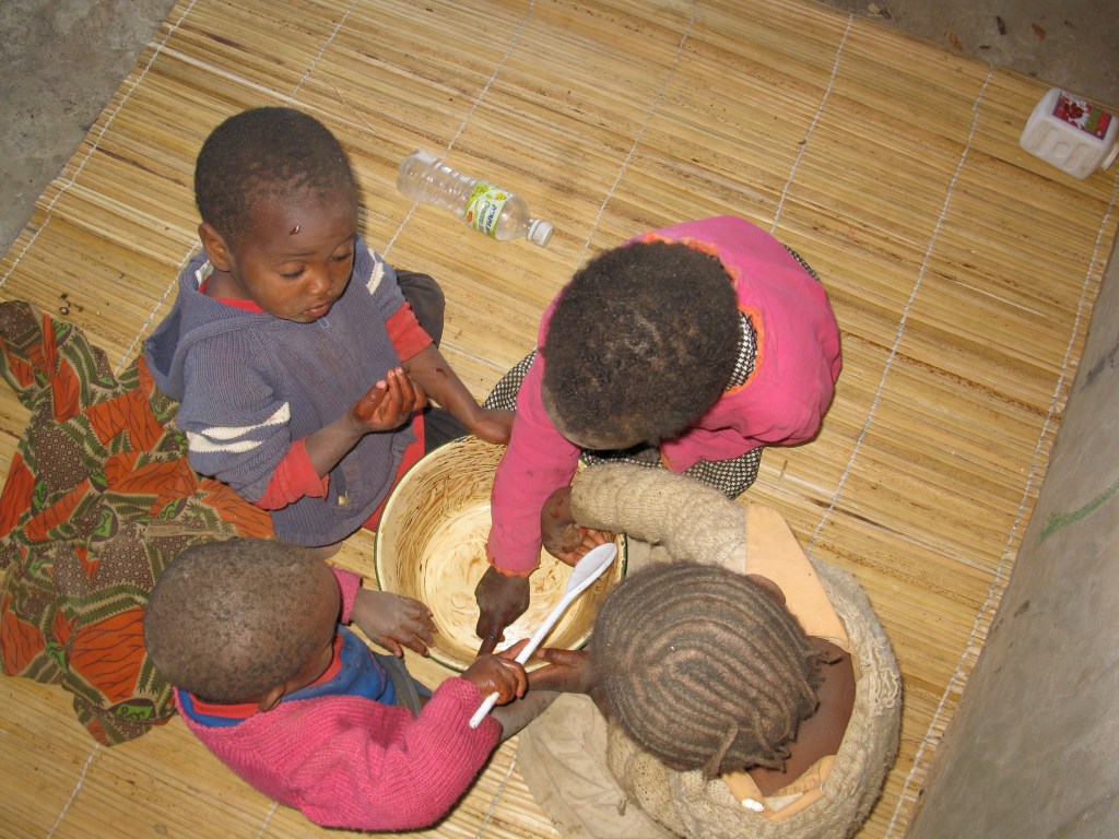 the kids licking the bowl after making chocolate cake!